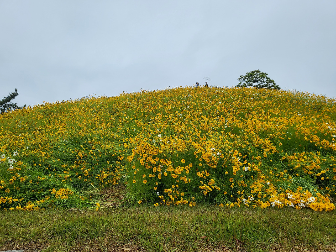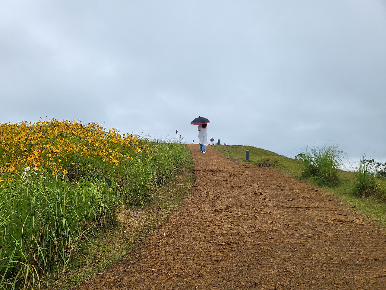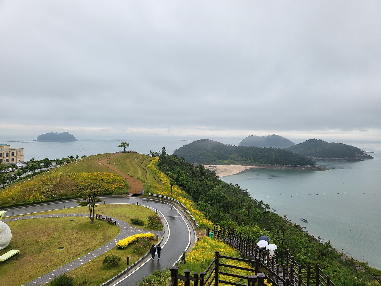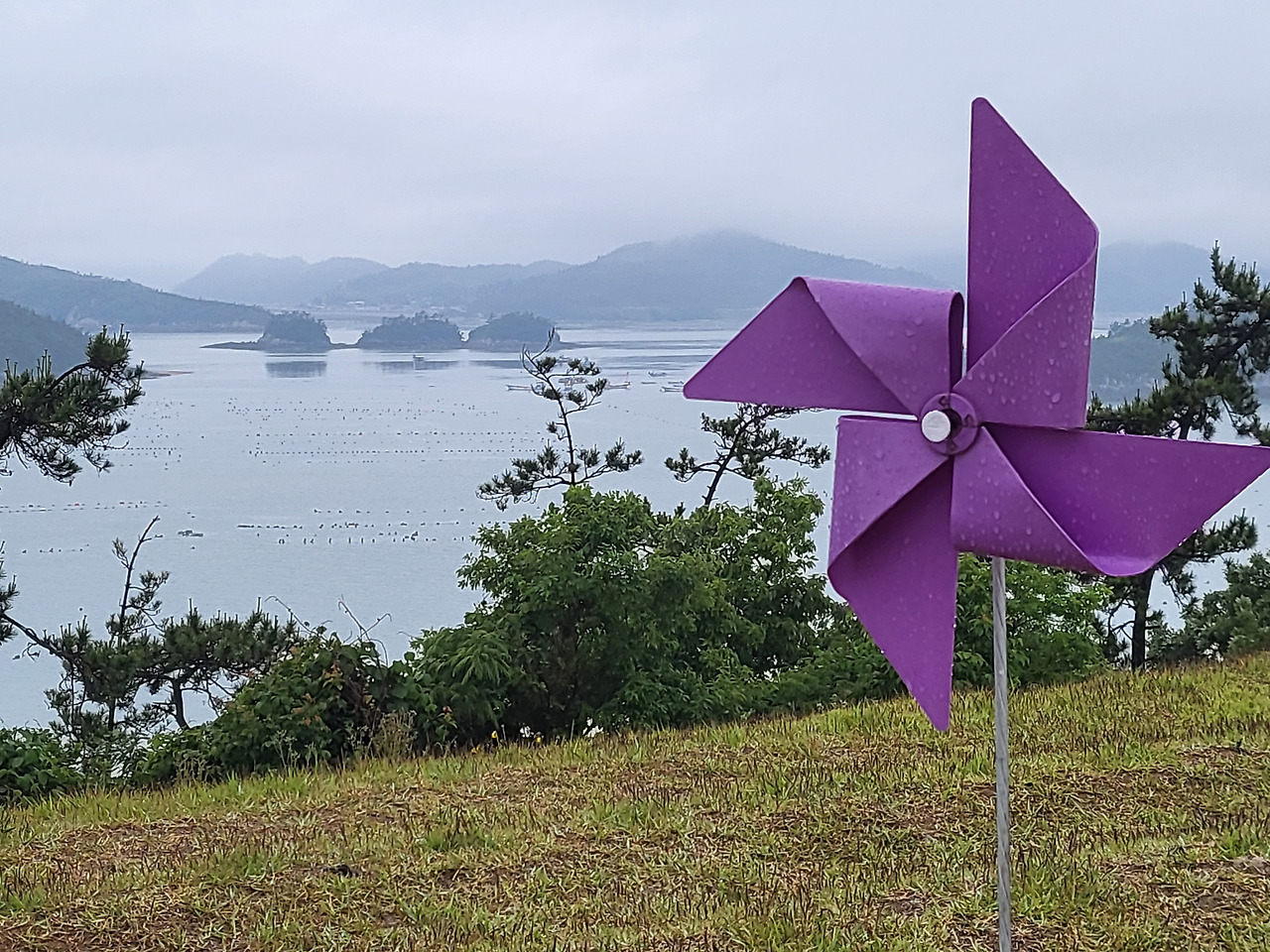 데스크에서 숙소 배정을 받고 나오니 비가 더욱 세차게 내렸다. 그러거나 말거나 숙소에 짐을 내려놓고 부랴부랴 우산만 챙겨서 나왔다. 다도해해상국립공원답게 섬들이 옹기종기, 아기자기 참 예뻤다. 비가 내려 노란 금계국은 더 샛노랗게 바람 따라 흔들거렸다. 분홍바늘꽃은 꽃잎 끝에 매달린 빗물이 꽃 눈물 같아 발걸음을 붙잡았다. 고등학교 때 웃픈 사건을 이야기하며 깔깔 웃었다. 별일 아닌데도 마음을 나눈 친구를 만나면 웃음이 헤퍼진다.