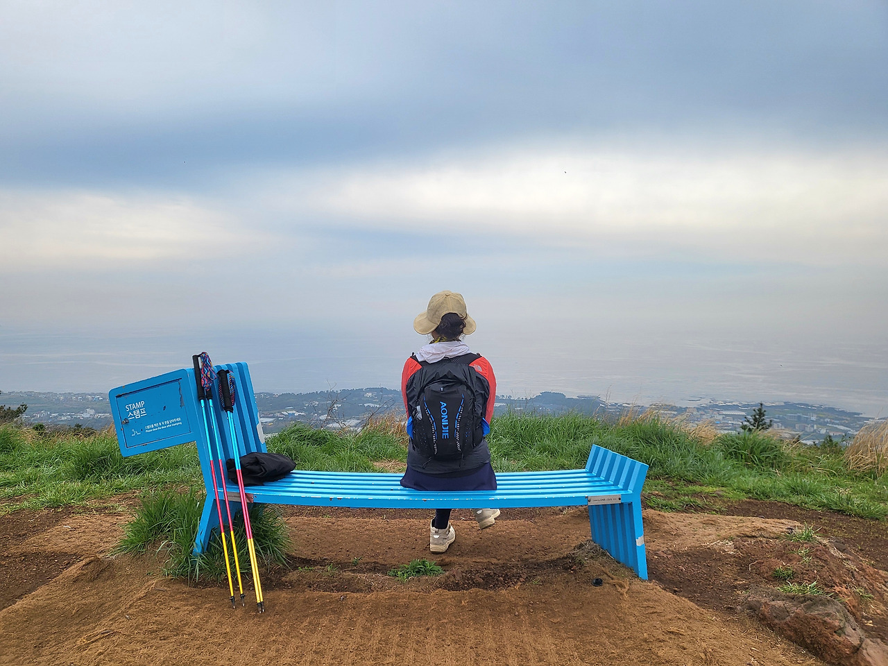 올레 여느 중간 간세와 다르게 군산 정상부에 설치된 간세는 특별했다. 하나의 멋진 예술품으로 서너 명은 넉넉히 앉을 수 있었다. 날씨는 끄물끄물 하지만 제주도 전체가 한눈에 삥그르르, 내 안에 들어왔다. 대체 불가한 아우라를 가진 한라산과 미친 피지컬의 산방산이 보였다. 사이좋은 형제섬과 마주 앉은 송악산, 편히 누워있는 가파도, 금방이라도 돌고래를 반길 것 같은 마라도, 높고 낮은 오름과 수줍은 섬들이 바다와 다정하게 손잡고 오손도손 살고 있었다.