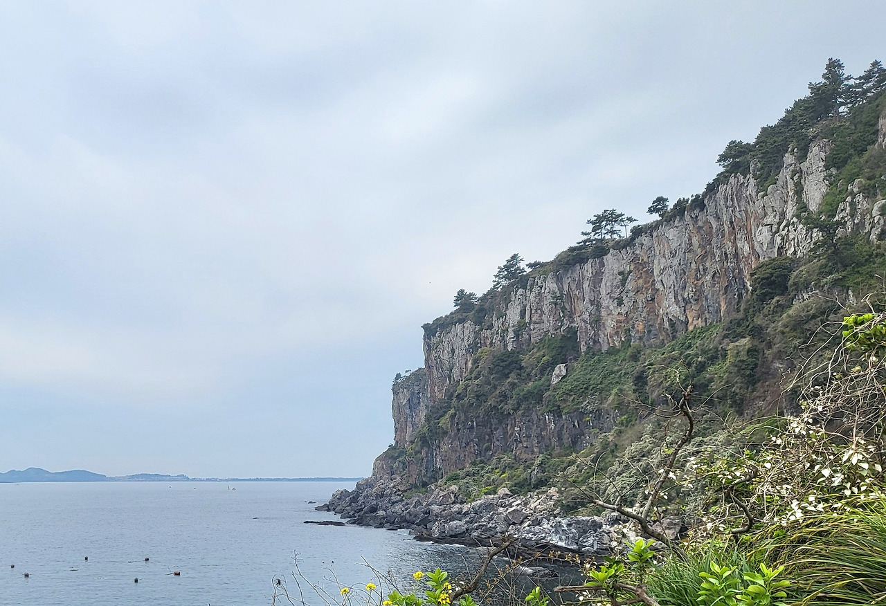 빗방울이 한두 방울 떨어졌다. 박수기정을 코앞에서 영접하니 연말에 특별보너스 받은 기분이었다. 좁은 숲길로 걸음을 옮겨 가파른 바위를 타고 올라갔다. 기분 좋게 차가운 청량감이 느껴졌다. 살짝 ‘숨차다’ 싶게 올라갔는데, 갑자기 탁 트인 넓은 밭과 비닐하우스 농막이 있었다. ‘어떻게 이곳으로 농자재를 운반했을까?’ 의문이 들지만, 절벽은 평지와 연결된 또 다른 길이란 걸 잊고 있었다.