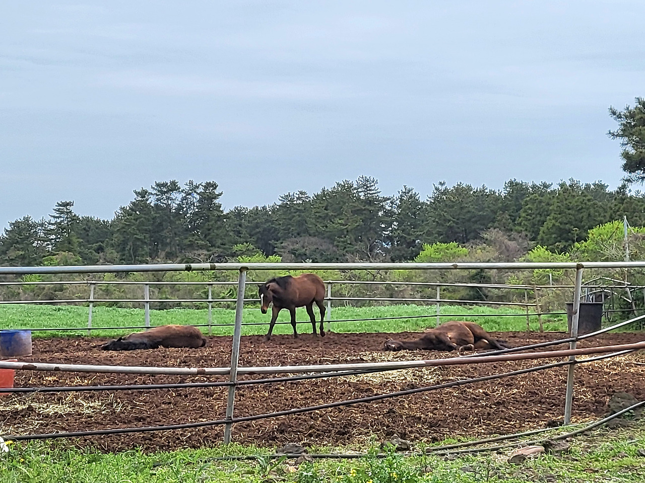오름의 들머리에서 정상까지 과장을 조금 보태 한걸음에 올라갈 수 있었다. ‘문도지오름’ 정상은 카스텔라처럼 황톳길이 보들보들 보드랍다. 올라오는 수고에 비해 펼쳐진 풍경은 신이 나에게 보내온 선물 같다. 하늘은 여전히 비를 가득 머금었다. 오름 정상에 앉아 꼬꼬지 시간여행을 떠났다. 높지 않은 오름이지만 한라산과 주변에 봉긋 솟은 오름들이 한눈에 들어왔다. 낯가림 없는 조랑말들은 탐방객의 인기척에도 여전히 평화롭다. 말에게 양해를 구하지 않고 불쑥 찾아온 손님 같아 미안했지만, 평온한 시간을 보냈다. ‘문도지오름’ 출구를 나올 때 ‘경고, 제발 문을 열어 놓고 가지 마십시오’ 푯말이 있었다. 공간을 배려해 준 감사한 마음에 한 번 더 힘을 줘 문을 꼭 닫았다.