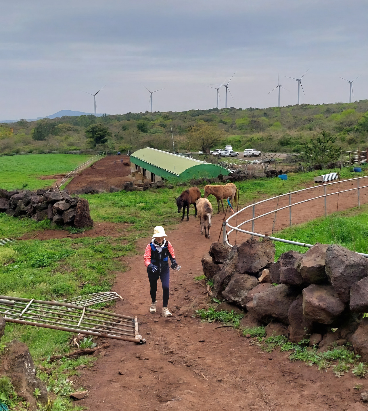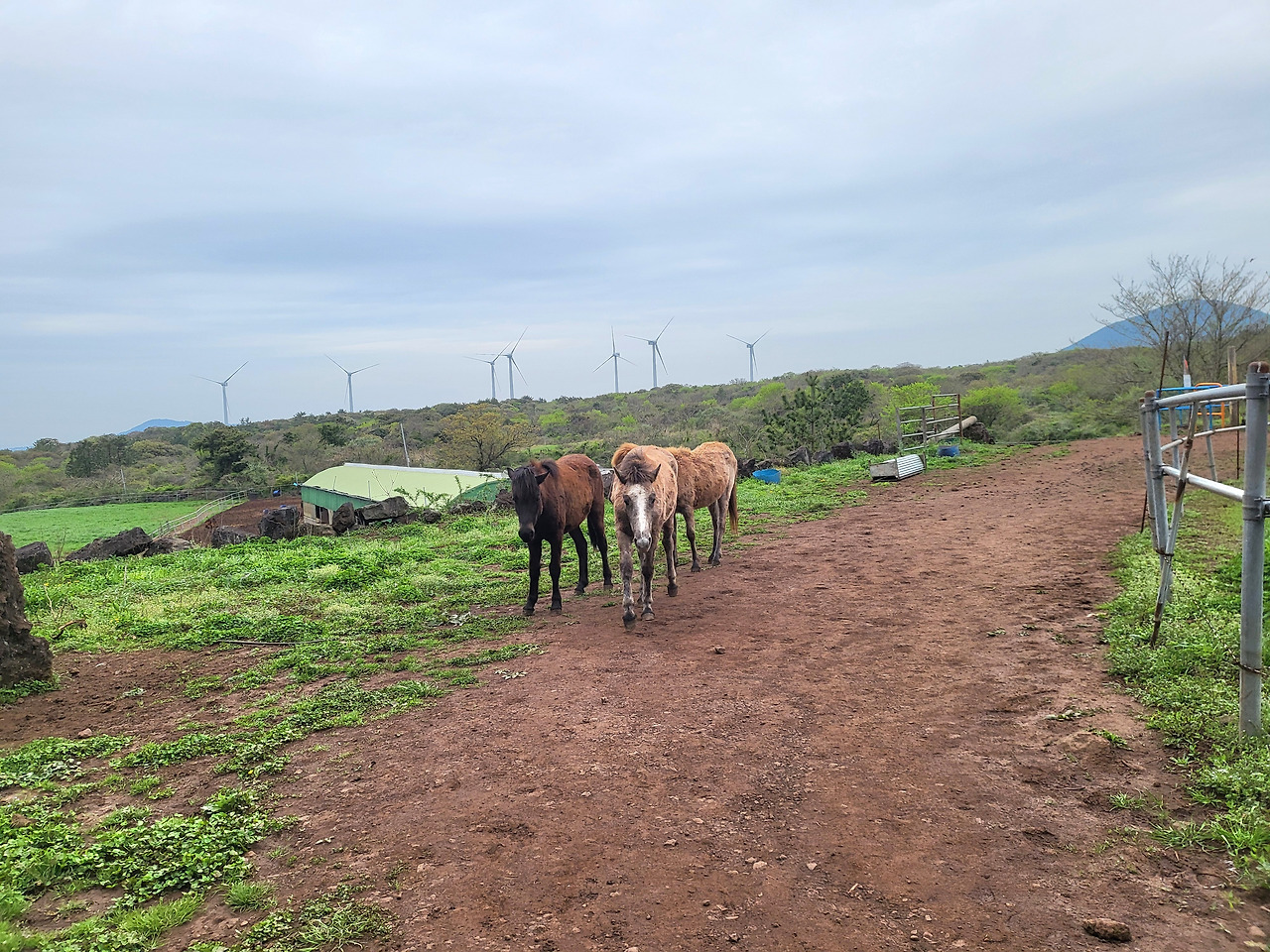 말을 방목해서 키우는 명성 목장에는 벌써 몇 팀이 있었고, 자동차도 여러 대 주차됐다. 외길이라 이곳을 지나야 ‘문도지오름’에 갈 수 있다. 조랑말들은 이 구역 터줏대감으로 아침부터 들이닥친 방문객에 벌써 지친 기색이다. 사람이 다가와도 개의치 않으며 낯가림도 없다. 순한 강아지 같다. 사람 뒤를 졸졸 따라오며 스스럼없이 대하는데, 되려 사람인 내가 뒤쫓아 오는 조랑이를 보고 호들갑이다.