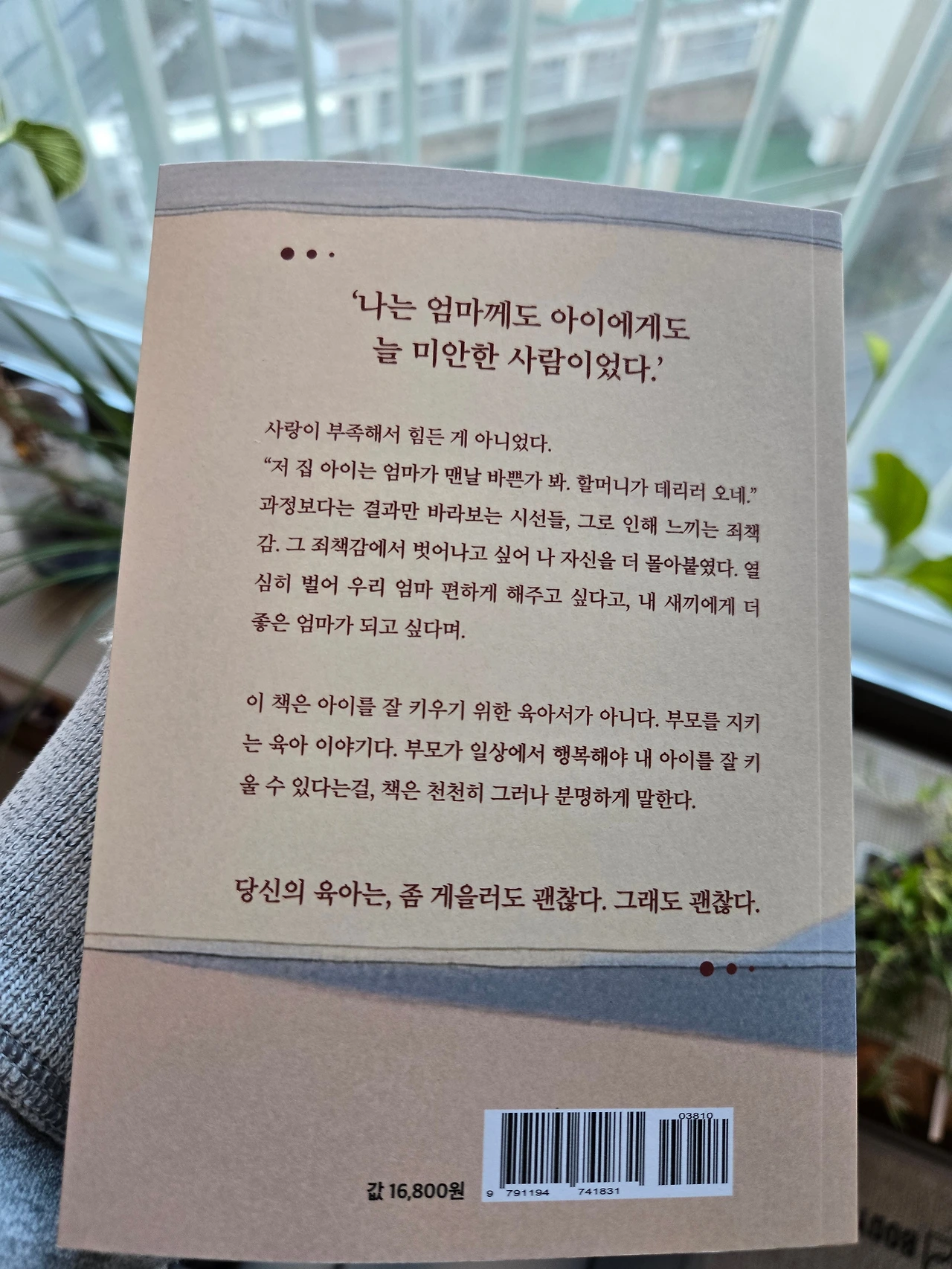 이 책은 아이를 잘 키우기 위한 육아서가 아닙니다. 대신 부모가 무너지지 않아야 아이도 행복하게 자랄 수 있다는 진실을 이야기합니다.