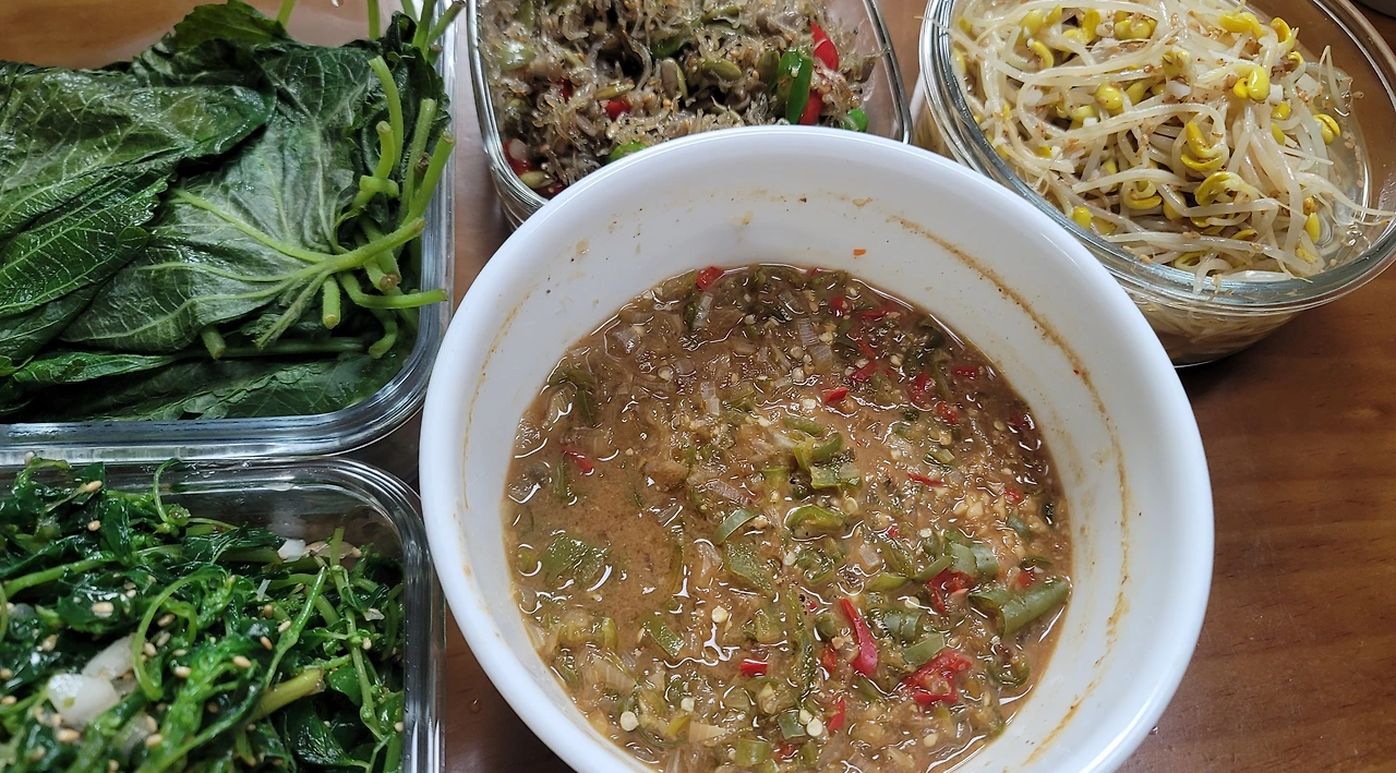 강된장, 비름나물, 잔멸치 볶음… 친정엄마의 나물 반찬에 남편의 입꼬리가 한껏 올라갔다.