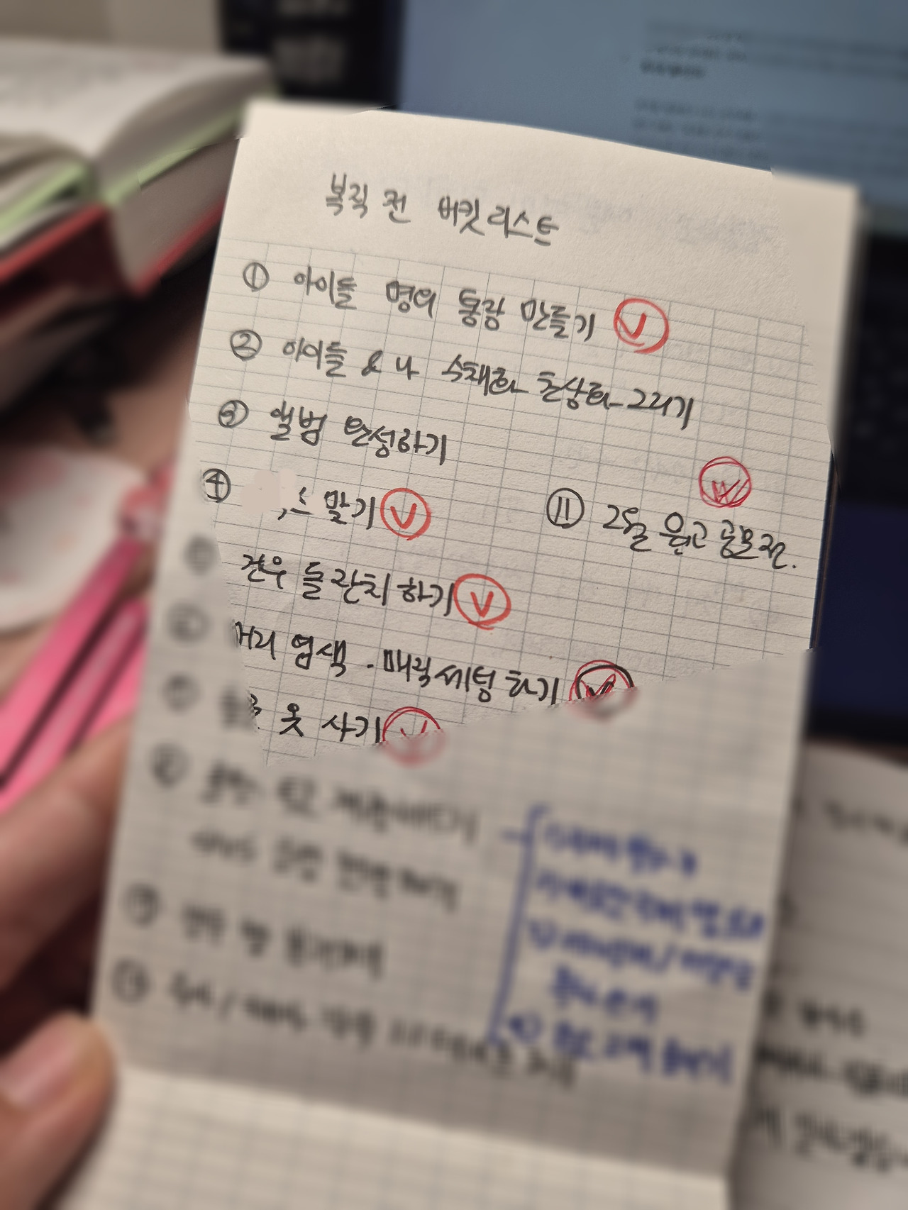 할 수 있는 게 기다림밖에 없다는 사실은 사람을 지치게 만들었다. 그래서 기다림 말고 내가 할 수 있는 다른 일을 하기로 했다. 버킷리스트를 작성했다. 그리고 하루하루 그 리스트에 적힌 목록을 지워는 즐거움으로 발령을 기다렸다.