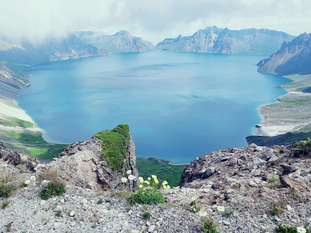 천지의 기운을 받겠다 디딘 백두산,