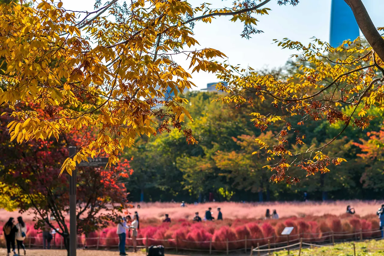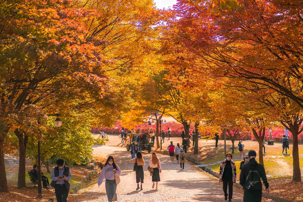 가을을 만끽하며 걷는 단풍객들
