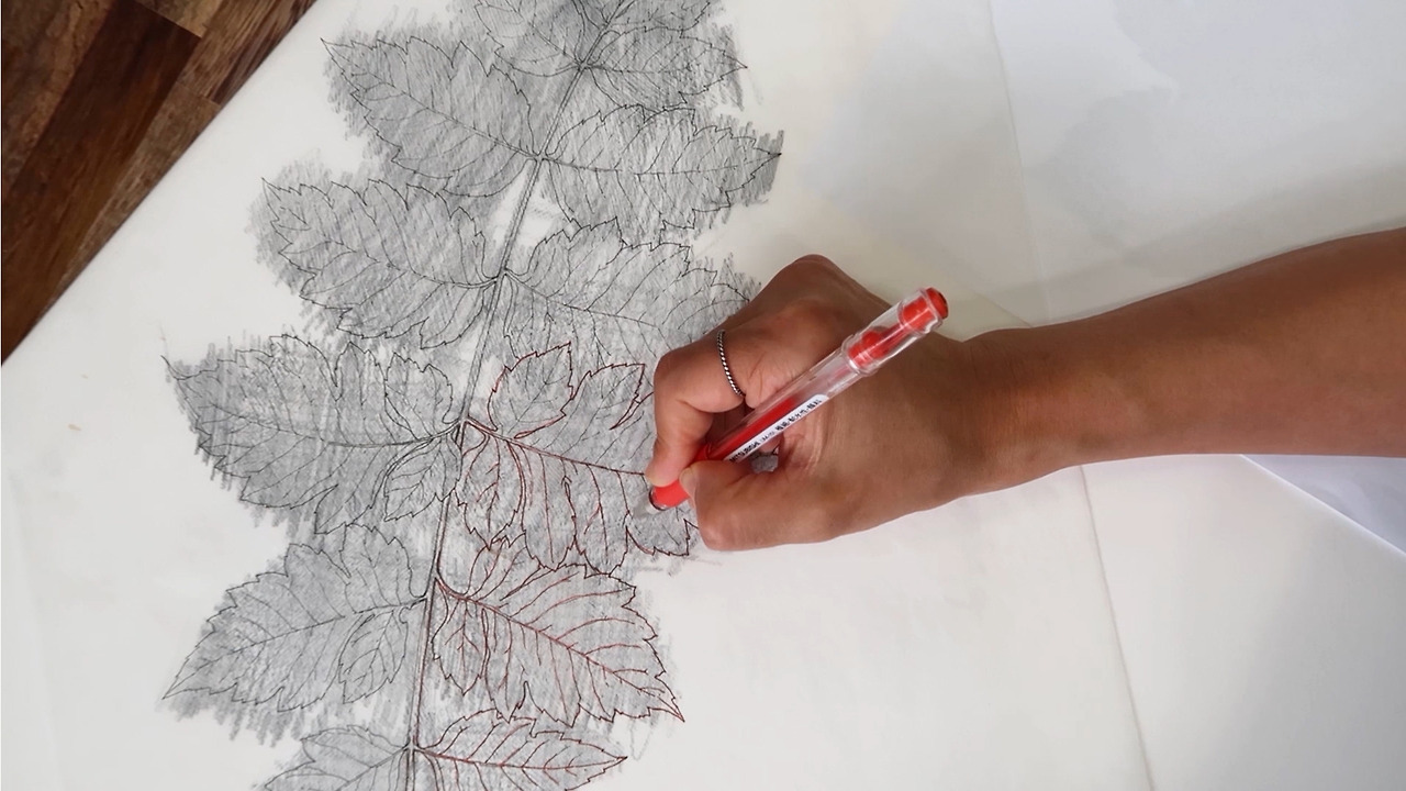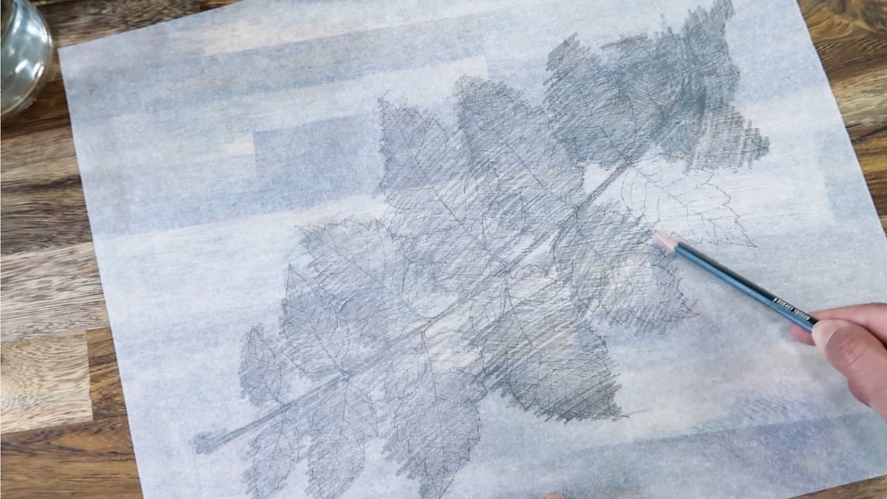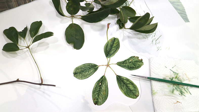 -색이 완전히 마른 후, 물과 붓을 이용해 잎맥을 닦아준다.