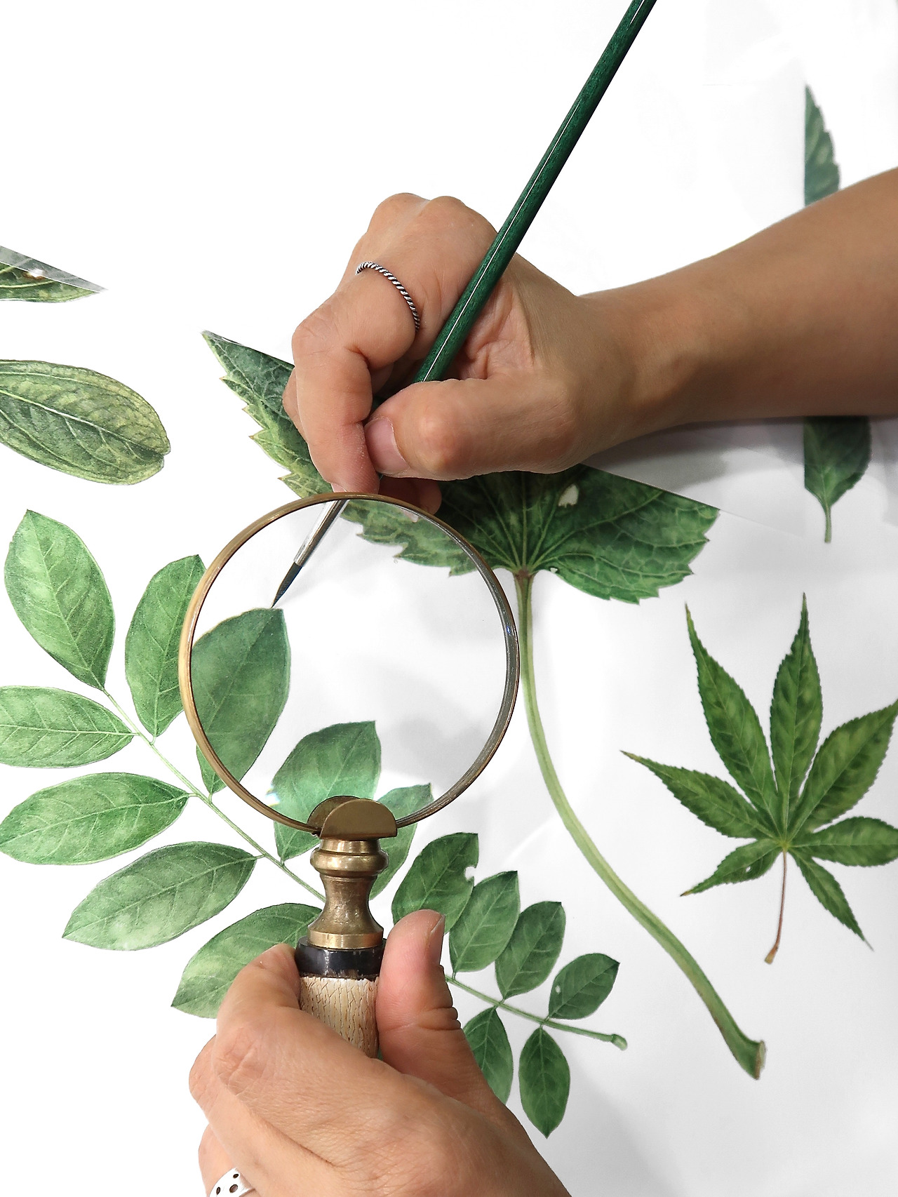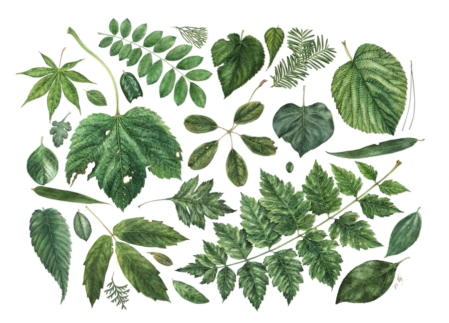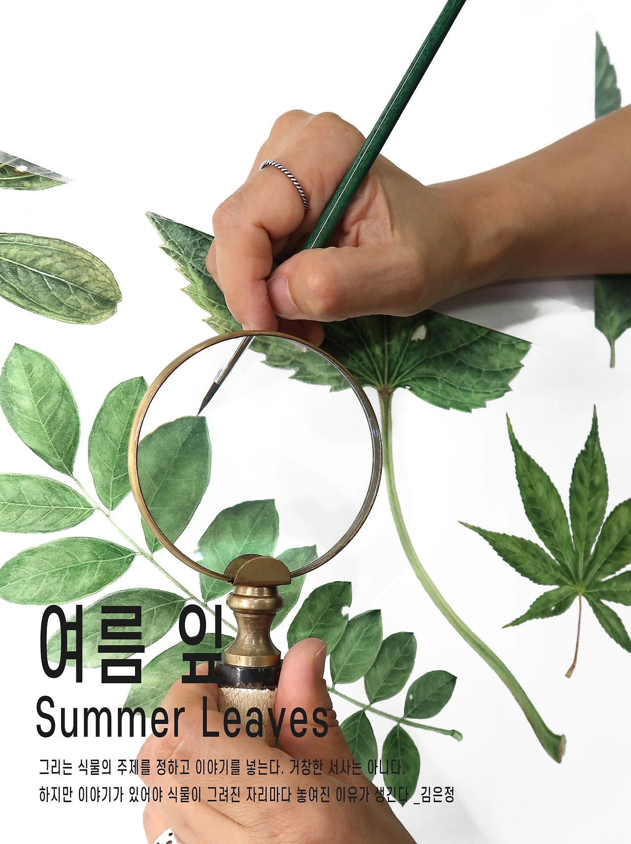 나는 오래전부터 커다란 종이에 가득히 잎을 그리고 싶었다. 그리고 싶은 식물목록을 적어두고 수정과 삭제를 번복하지만 “잎 모음”은 언제나 굳게 자리 잡고 있었다. 하지만 목록의 우선순위에 있다고 그리는 순서도 먼저는 아니고 실제 작업하는 것은 각 나름대로 시기가 생긴다.