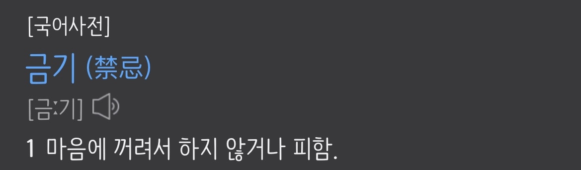 금기는 이러한 사전적 정의를 담고 있습니다.