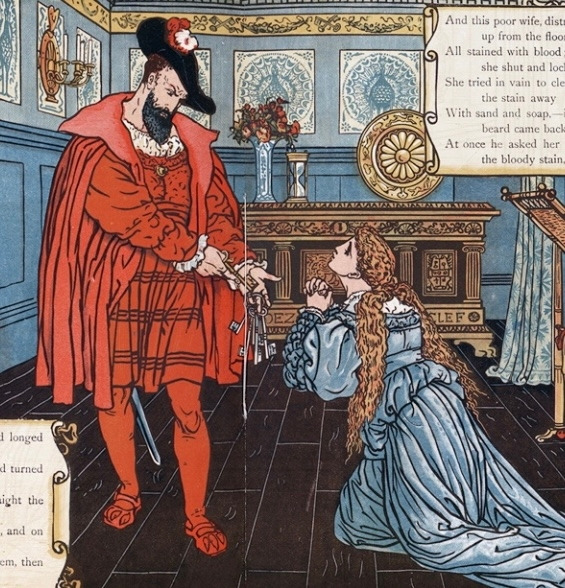 푸른 수염은 아내에게 큰 성의 모든 다른 문은 열어도 되는데 지하실 구석의 작은 한 방만 열지 말라고 합니다.
