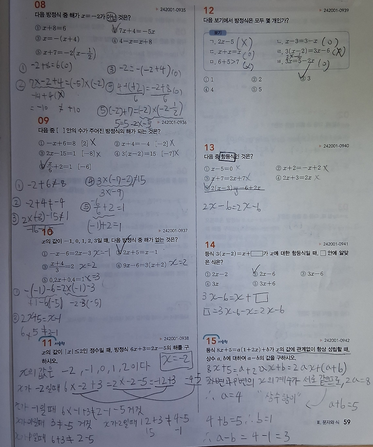 노트를 쓰는 것에 대한 저항이 다소 있었으나 함께 수업할 때는 곧잘 따라오는 것 같아 보였다. 그리고 세 번째 수업을 하기 전 받아본 숙제에서 연석이는 너무나 훌륭하게 노트까지는 아니었지만, 문제집 문제 여백에 수학 문제를 푼 과정을 잘 정리해 냈다.