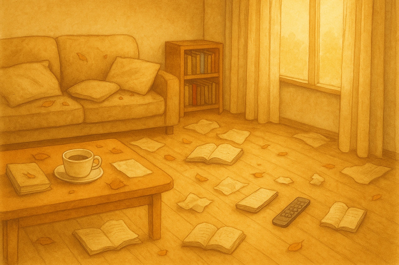 흩어진 책들은 한 곳에 모아 잠시 덮어두었습니다.
