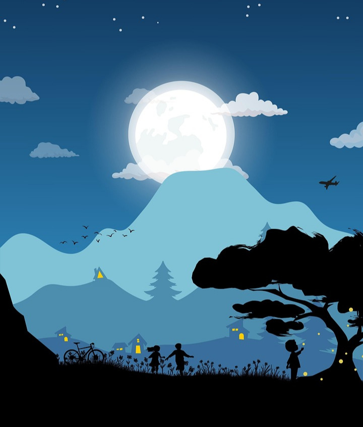 밤이 되고 사람들이 잠들자 은은한 달빛을