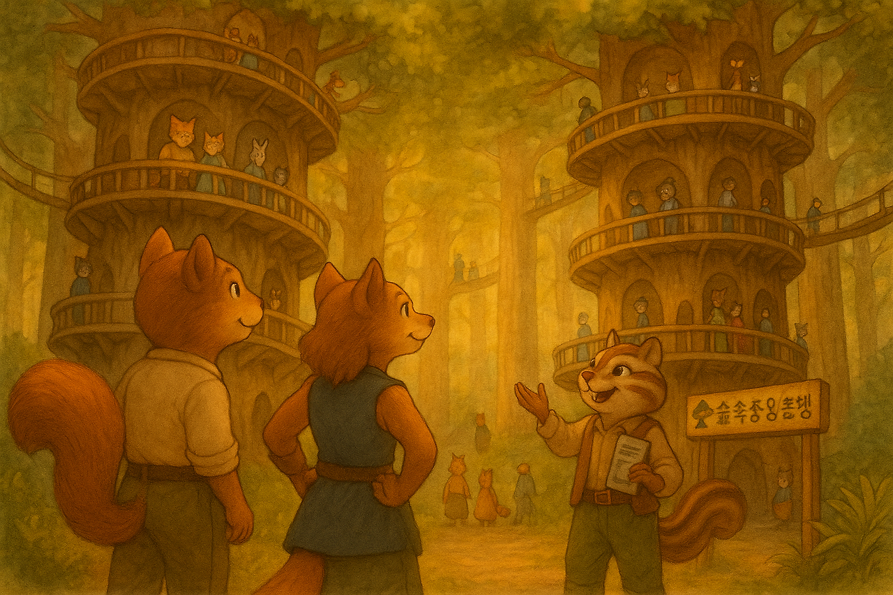 "원래 이 하늘 나무집들은 도토리 1만 개를 주셔야만