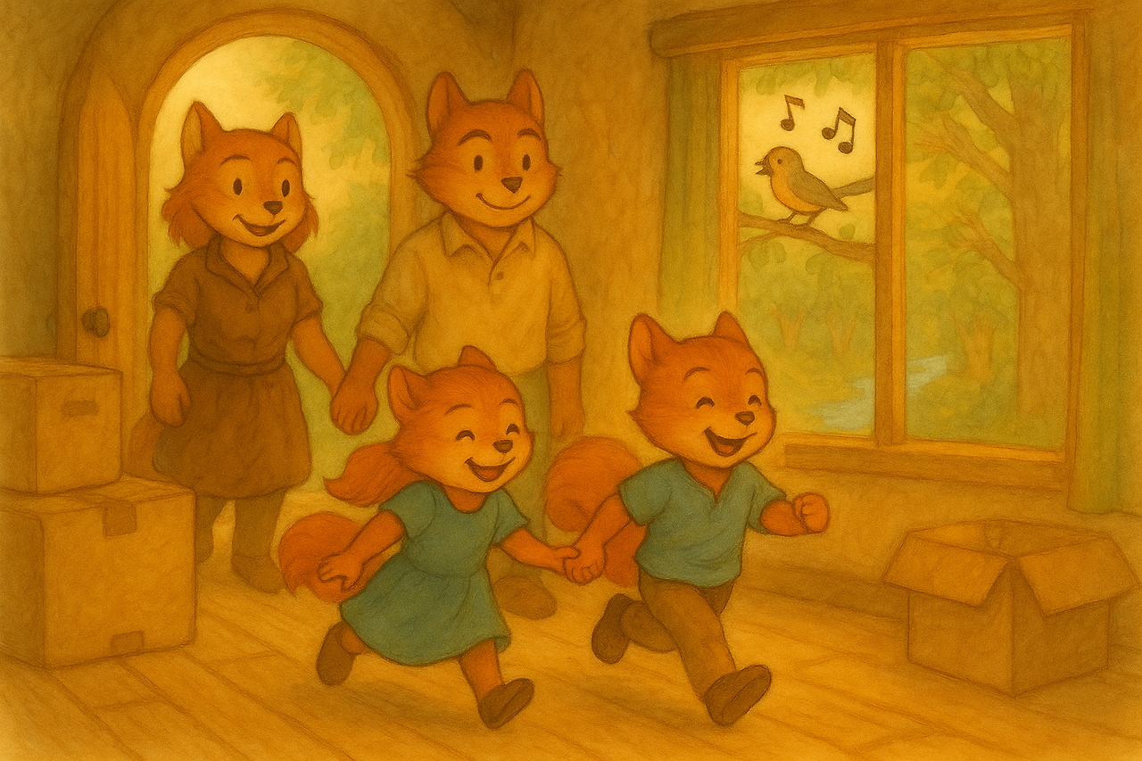 아이들은 신이 나 집 안을 빙글빙글 뛰어다녔고,