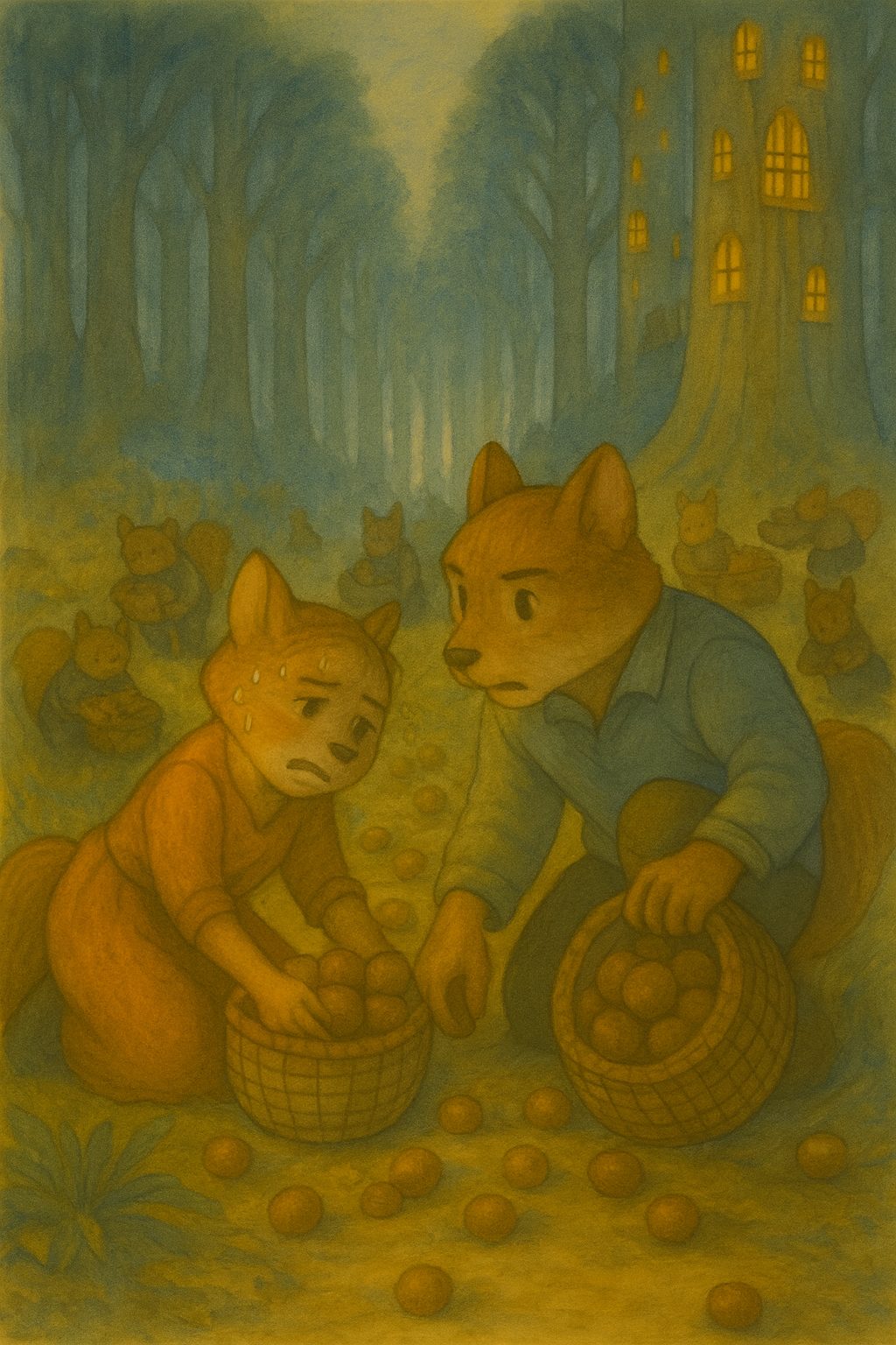 어느 해 질 녘, 빈손으로 도토리를 찾아