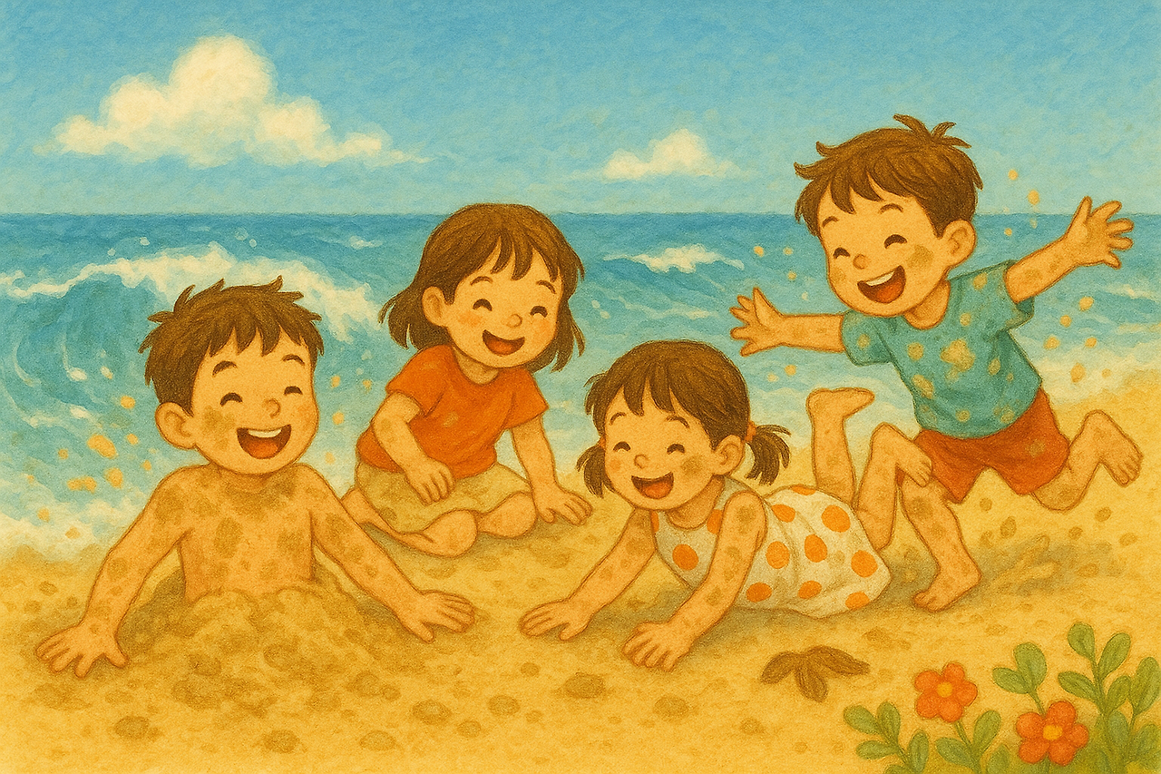 바다와 급속도로 친해진 아이들은