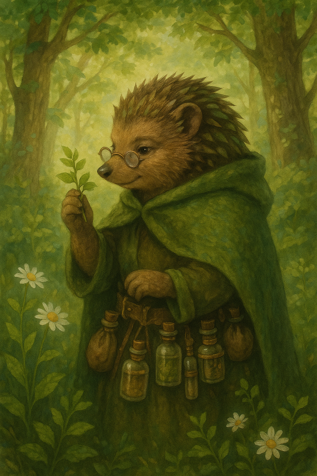 작은 약초 바구니를 들고 선 고슴도치, 벨라였습니다.