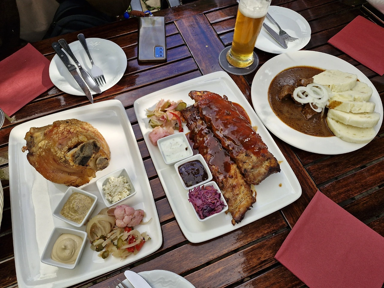 꼴레뇨의 바삭한 껍질은 턱관절이 아파도 멈출 수 없었고, 폭립은 딸이 ‘인생 립’이라며 감탄했다. 굴라쉬는 헝가리식과는 달랐지만 나름의 깊은 맛이 있었다. “천국이 따로 있냐! 이런 게 천국이지.”