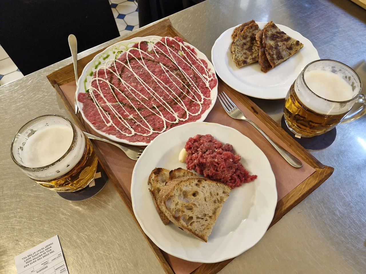 프라하 첫날의 설렘이 아직 진하게 남아 있다. 칸티나에서 티본스테이크를 맛보지 못한 아쉬움도 있지만, 대신 즐겼던 비프 타르타르와 맥주 이야기를 나누며 아침을 열어본다.
