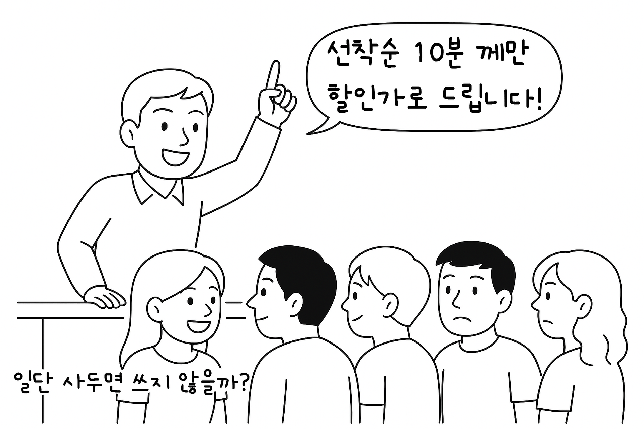 정보 희소성 효과는 어떠한 상황이나 제품에 대한 정보가 제한적으로 제공될 때, 제공된 정보를 더 중요하고 과도하게 해석하는 인지 편향을 의미합니다. 조금 어렵지요? 걱정하지 마세요. 여러분을 위한 아주 쉬운 예시가 있답니다. 이를테면 길거리를 걷다 보면 보이는 ‘폐업 할인’이라는 플래카드라거나, 쇼핑몰 사이트에서 흔히 볼 수 있는 ‘한정 수량’, ‘nn분 동안 할인’ 같은 것들이 바로 그거예요. 구체적인 제품의 정보를 제공하는 대신, 소비자 입장에서는 쓸모없는 정보를 가장 크게 제공해서, 그 정보를 좀 더 가치 있게 평가하게 만드는 것이지요. 그리고 대개, 이런 상황에서는 ‘FOMO(Fear Of Missing Out)’을 유발하는 ‘한정 판매’ 같은 정보를 제공해서, 이런 정보를 더 가치 있게 평가하고, 지금 사지 않으면 후회할 거 같은 기분을 만들어내지요.