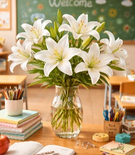 나는 구입한 백합을 들고 평소보다 조금 일찍 학교에 갔다. 선생님이 도착하시기 전에 꽃병에 꽂아 놓고 싶었다. 담임선생님께서 교실로 들어오셨고, 들어 오시자 마자 꽃을 보셨다. 그 순간을 나는 아직도 또렷하게 기억한다.