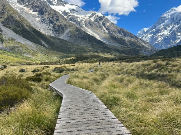 산맥 중에 유난히 높아 단연 돋보이는 마운트 쿡은 목적지에 가까이 갈수록 선명하게 다가온다. 남섬에서 제일 높은 3700미터의 설산인 마운트 쿡을 가는 것은 누군가의 버킷 리스트이다.