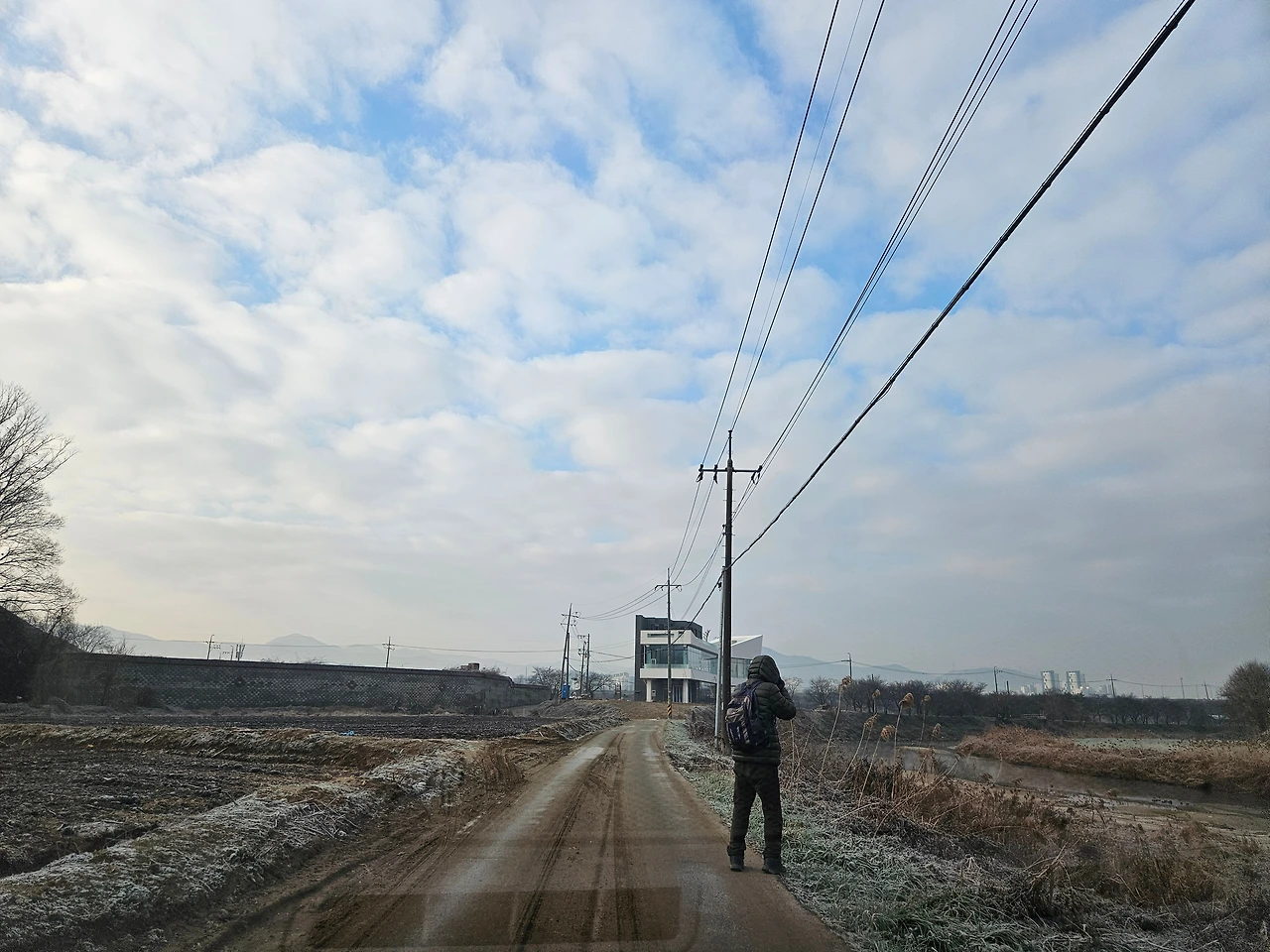 추운 날씨에도 작품에 대한 열정은 식을 줄 모르고 하천변을 따라 걷다가 카메라 앵글을 들이대곤 한다.