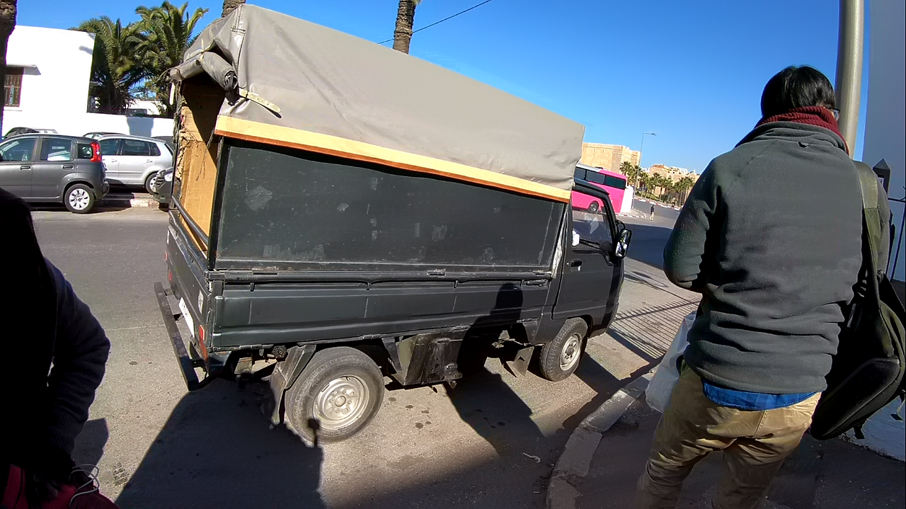 -라바트 CTM 터미널에 도착해서 밖에 나왔을 때, 폐차해도 될 법한 미니 트럭 기사가 와서 흥정을 걸었다. 3명이서 짐도 있고 숙소까지 쁘띠 택시 한대로 안되니 타라고. 귀찮아서 60~70디르함인가 주고 탔는데, 꽤 먼 거리긴 했어도 비싼 가격이었다. (쁘티 택시 위에 짐을 실을 수도 있는데, 그리 단단히 고정을 하는 것 같지는 않아서 우리는 해보지 않았음) 상황에 따라 쁘티 두 대로 갔어도 좋을 거리였다.