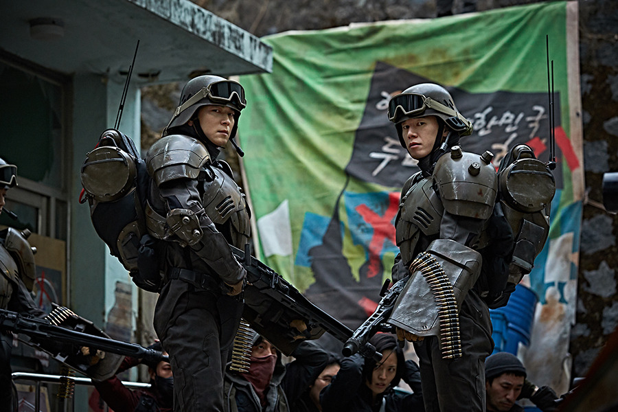 우선 의식적으로 눈여겨봐야 할 부분은 싸움의 실체다. 영화의 초반에 미래에 대한 설명이 나오며 한껏 기대를 하게 만들었던 상황은 실상 스케일이 크지 않다. 남북통일 단계에서 강대국들의 방해가 있고 사회 소요가 있으며 그에 따라 테러단체가 등장한다고 하지만, 이 모든 요소가 그다지 몰입도가 높지 않다. 그리고 영화의 초반부에 나오는 테러단체와 기동대 간의 지하 혈투 이후 영화는 한정된 공간만을 이용한다. 연륜 있는 배우들이 만들어내는 갈등 양상도 따지고 보면, 그냥 정부 부처 간 주도권 싸움일 뿐이다. 그 이상으로, 최고 권력자나 주변의 강대국이 연계된 무엇도 나오지 않아서, 전체적으로 영화의 스케일이 작아 보인다.