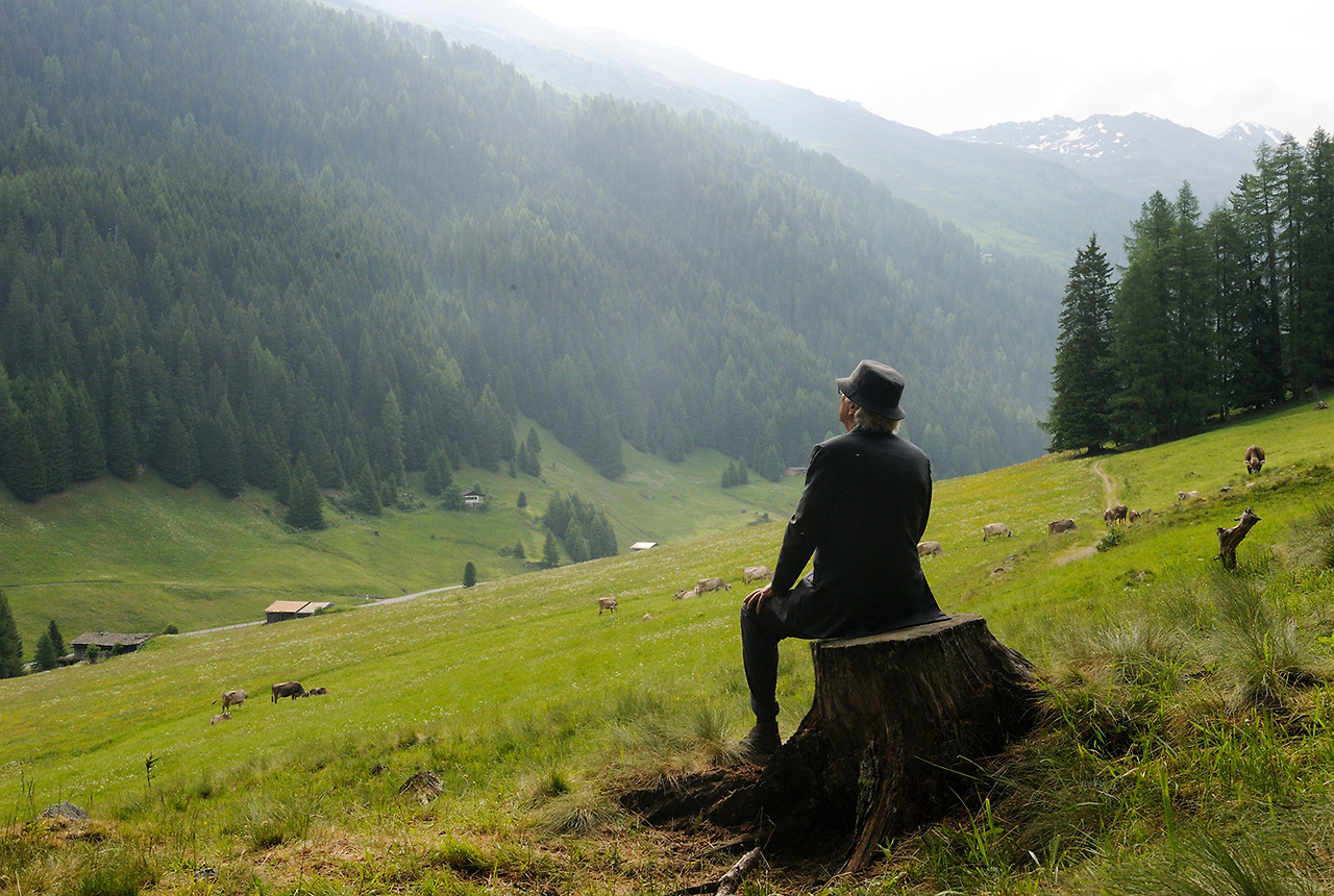 # 감독인 믹이 젊은 크루들과 알프스 전망대에서 망원경을 보는 장면에서 이들은 처음에는 먼 산을 당겨서 보는 확대경을 보고, 다음에는 어안렌즈로 풍경을 넓게 본다. 믹은 산을 보며 이렇게 얘기한다.