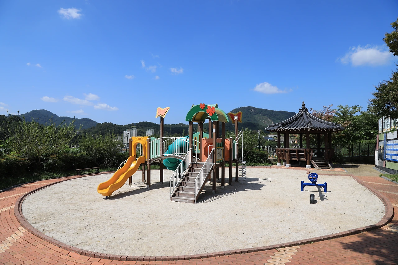 놀이터의 놀이기구도 누군가가 그냥 가져다 놓은 듯한 기분이 든다. 벽돌로 길을 다듬고 중앙에 모래를 부은 다음에 무심하게 툭, 던져놓은 듯하다. 미끄럼틀 세트 하나와 시소 하나가 전부인데 빈약하다기보다 깔끔해 보인다. 놀이기구 특유의 원색들이 너저분하게 퍼져있지 않고 모여있어서 그런 듯하다.