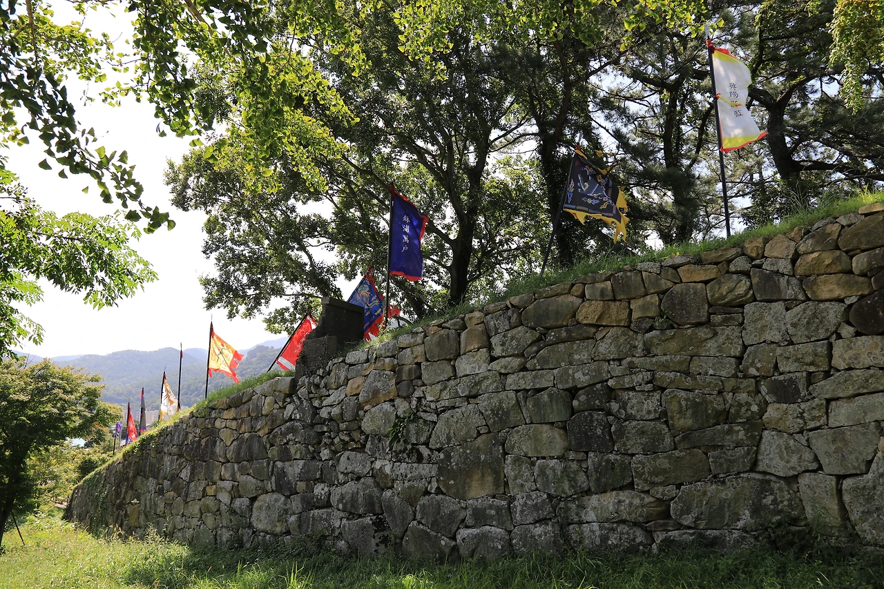 읍성이 있는 풍경에서 유일하게 거슬리는 건 색색의 깃발이다. 뜻도 소속도 알 수 없는 문양과 색 들이다. 일정한 간격으로 늘어선 기(旗)들은 크지 않고 깃대는 높지 않아 불만스럽진 않다. 게다가 바람에의 감응성이 뛰어나서 보는 재미는 있다.