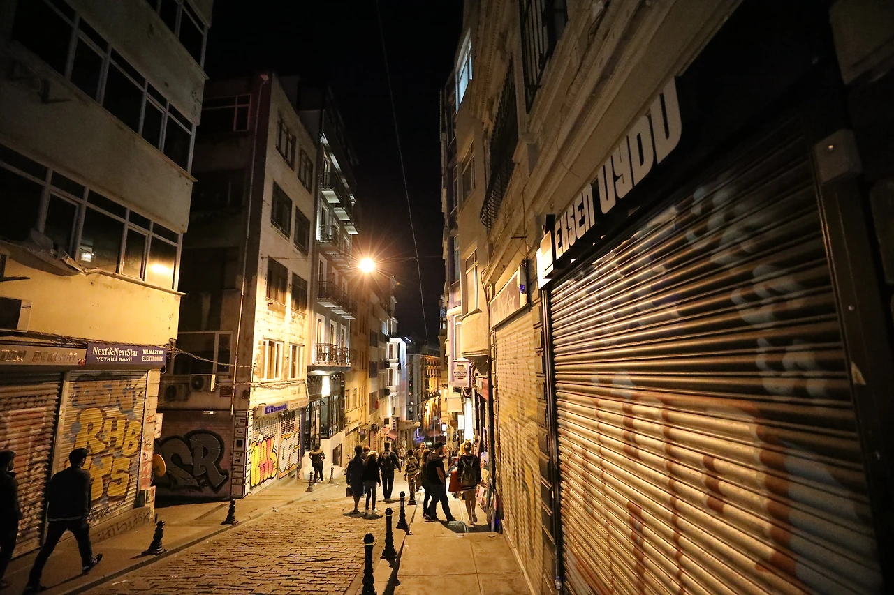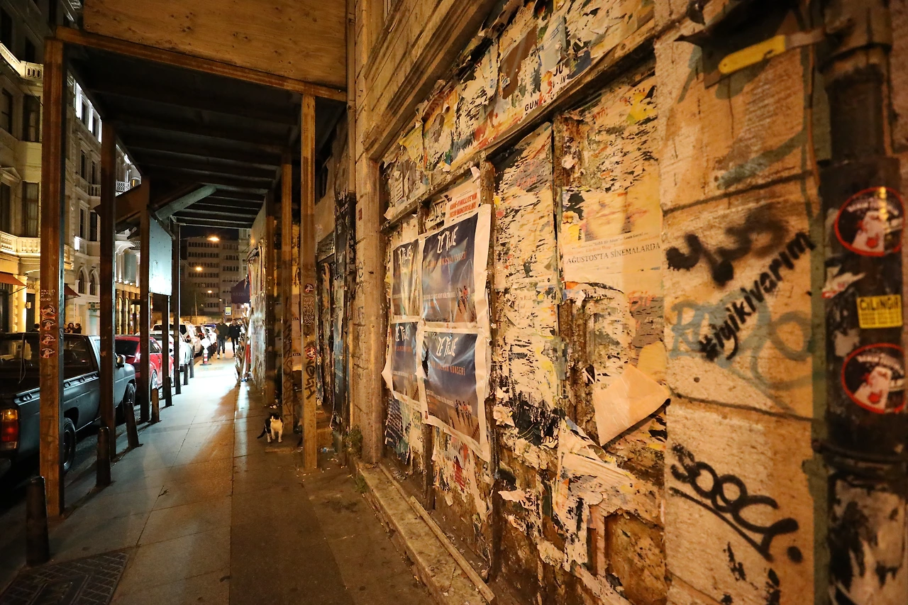 원래의 색을 알아볼 수 없는 벽을 지나친다. 낮에는 신경 쓰지 않을 풍경이다. 겹겹이 붙였던 것들이 잊힌 것들 특유의 질감을 풍긴다. 골목을 올라와 이스티크랄 거리로 나온다. 주말 밤, 사람들은 모든 방향에서 모든 방향으로 걸어 다닌다. 심지어 속도를 늦추지도 않는다. 마치 이 거리에선 당연히 그래야 한다는 듯이. 얼마 지나지 않아 내 걸음속도도 사람들과 비슷해진다. 살짝 웃음이 나면서도 멈출 순 없다. 걸으면서 셔터를 누른다.