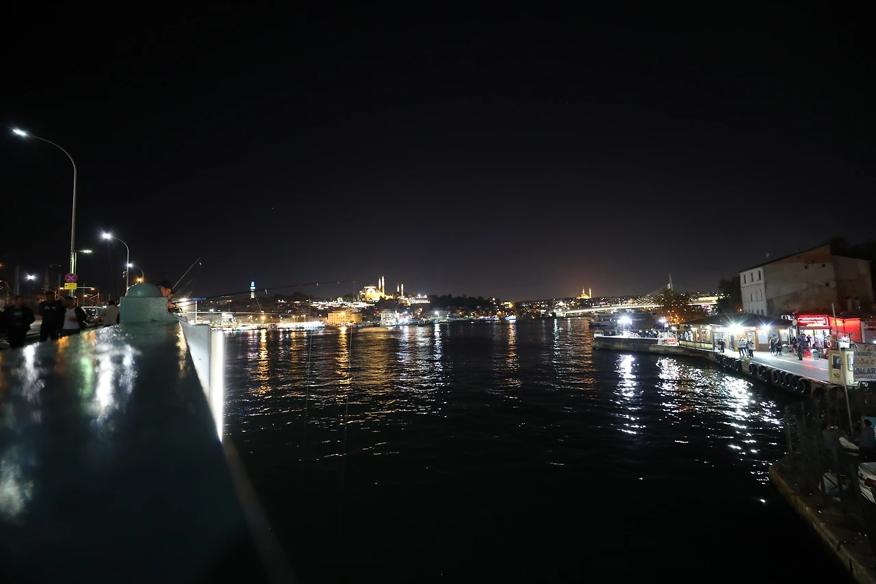 낮은 조도의 골목이 끝나면 대로가 나온다. 대로는 바로 보스포러스 해협에 놓여진 갈라타 다리로 이어진다. 일행과 합류하기로 한 시간보다 조금 일찍 다리에 도착한다. 낮에는 빽빽했던 낚시꾼들이 이제 듬성듬성이다. 난간에 팔꿈치를 올리고 검은 물을 들여다본다.