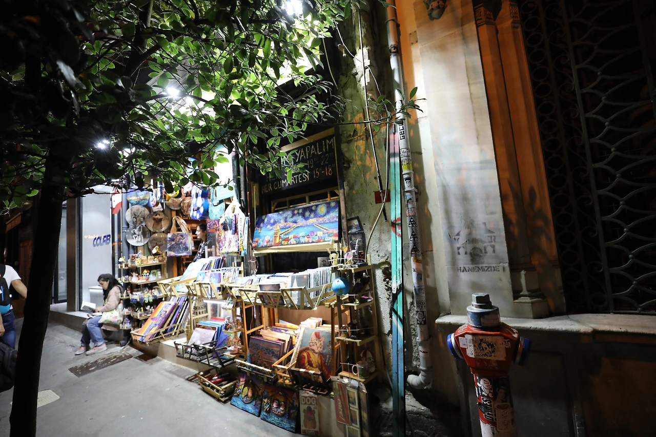 이스티크랄 거리가 끝나는 지점에 튀넬(이곳부터 갈라타 다리까지 운행하는 오래된 지하철) 역이 있다. 그곳을 바라보고 왼쪽으로 나있는 골목부터 풍경이 많이 바뀐다. 브랜드 옷가게와 몰, 화려한 레스토랑은 이제 보이지 않는다. 대신 직접 그리고 만드는 조그만 숍들이 나타난다.