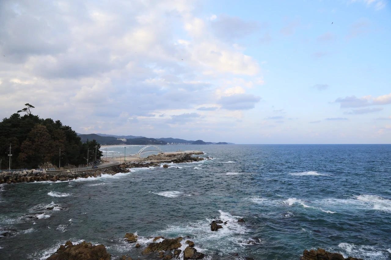바다가 끝나는 지점에 관광객을 위한 구조물이 있다. 이쪽의 바다는 순한가 보다. 파도를 부수어 위력을 약화시키는 테트라포드는 다른 쪽에 있다.