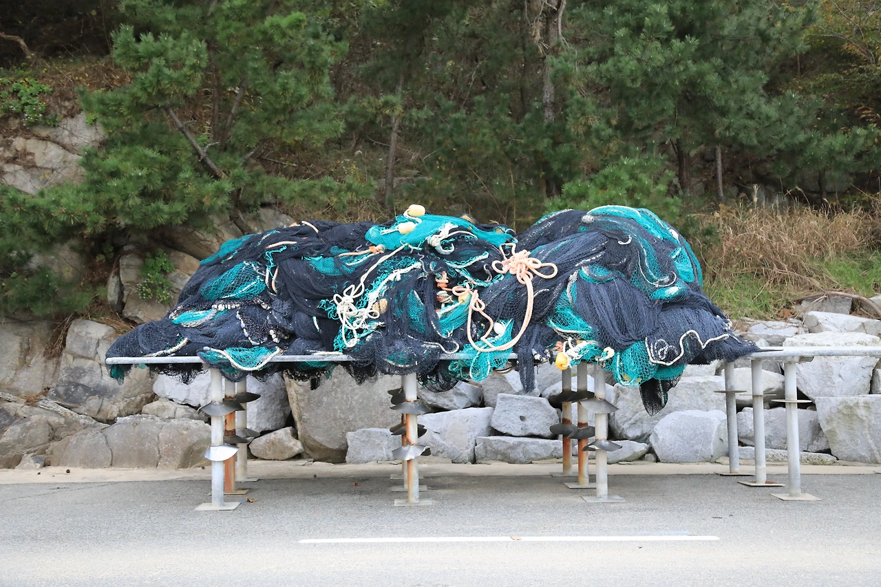 그물을 널어놓은 구조물을 지난다.