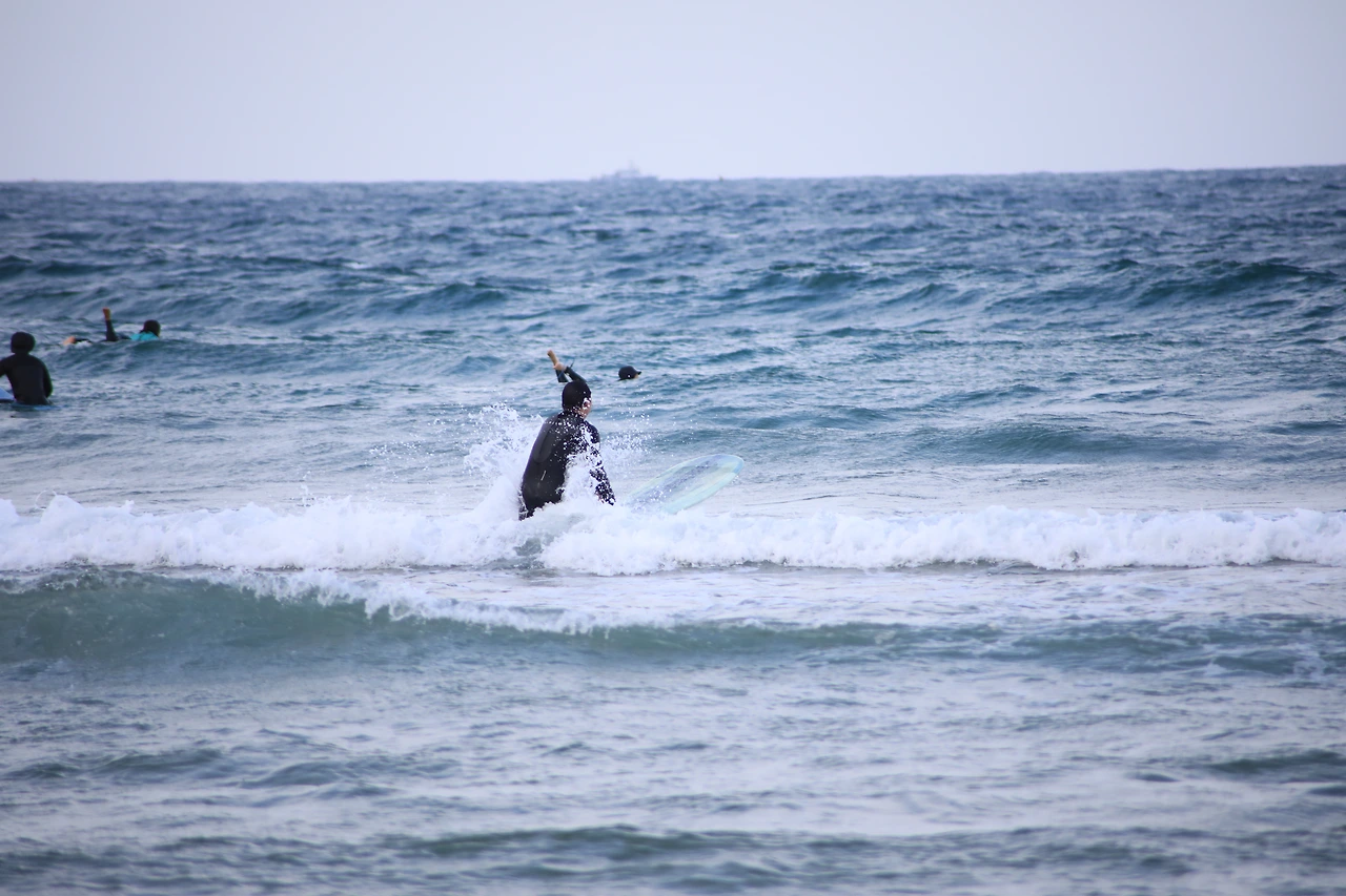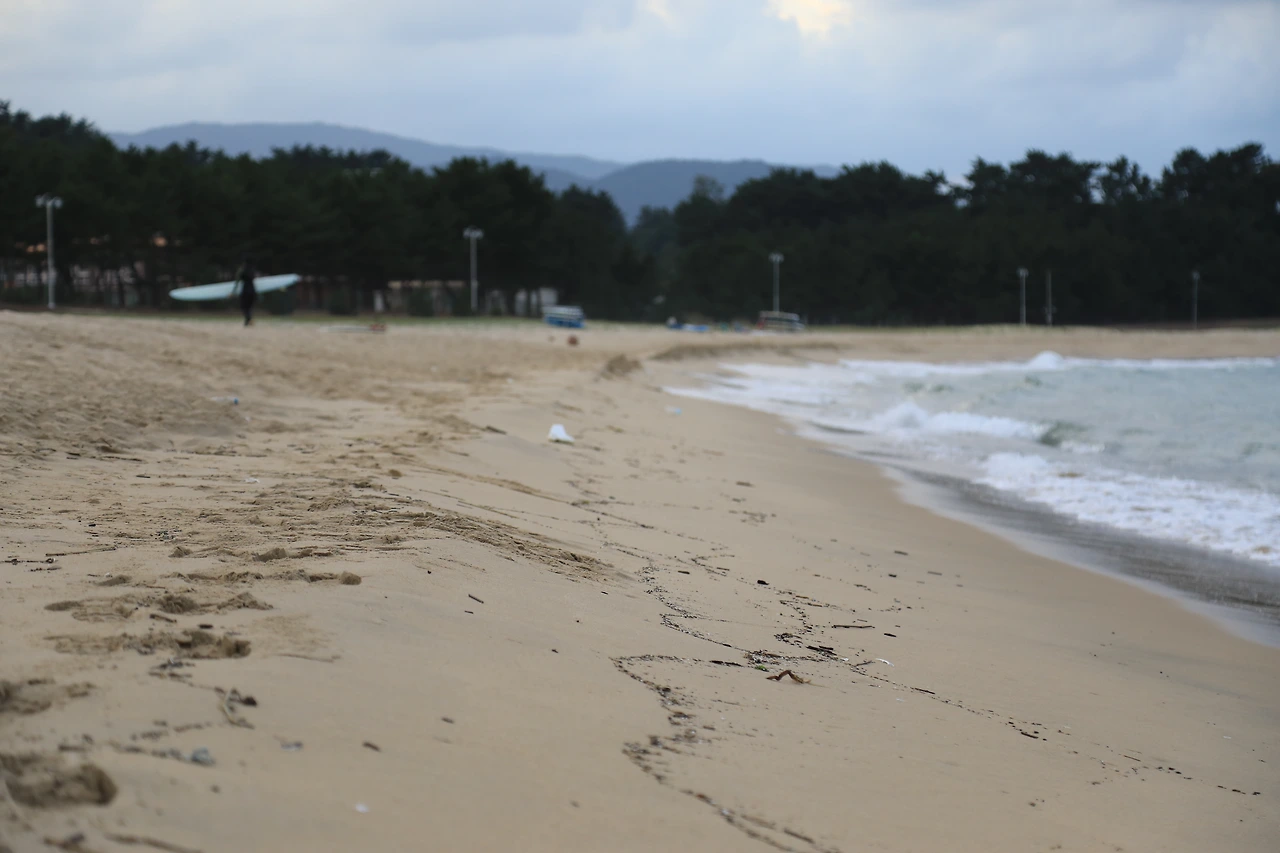 뜻밖의 바다. 전날 술자리에서 농담처럼 던진 얘기로 인해 서울에서 3시간을 달려왔다. 먼저 온 일행들은 바다에 들어가 있다. 좋은 파도,라고 하지만 나는 까막눈이다. 단지 파고만으로 파도의 질을 말하지는 않았을 것이다. 파도가 좋은지는 서핑 보드에 타 있는 사람만이 알 것이다. 바다에 들어갈 생각이 없는 나는 굳이 파도를 판단하지 않는다.