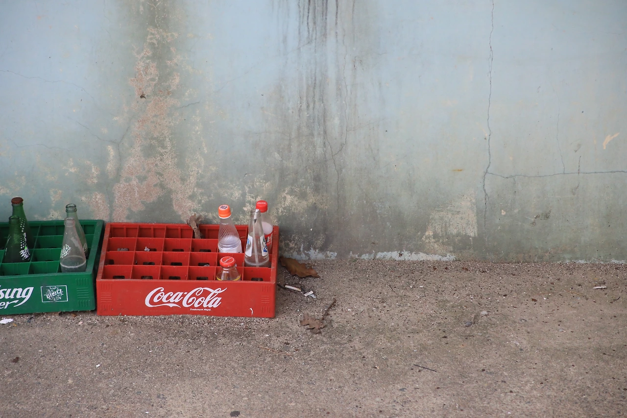 조그만 식당들이 모여있는 2층짜리 건물이다. 건물은 별다른 꾸밈없이 기능에 충실한 구조다. 초등학생이 자를 대고 죽죽 그은 것 같이, 직선들이 간결하다. 에어컨 실외기도 음료수 박스도 다 직선의 영역에 들어가 있는 느낌이다. 역시나 직선으로 난 진입로를 따라, 전망대에 오른다.