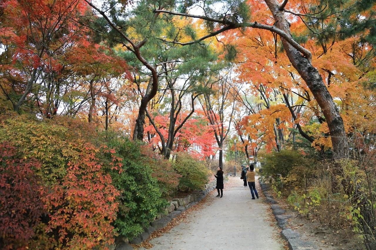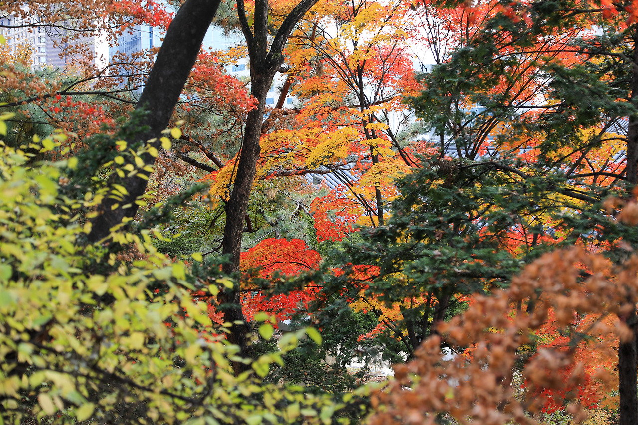 다른 계절보다 이 시기에 색의 종류가 더 다양할 것이다. 푸른 잎의 나무 뒤에 붉은 잎의 나무가, 붉은 잎의 나무 옆에 노란 잎의 나무가 겹겹이다. 사진을 빽빽이 채우는 빛들로 괜히 뿌듯하다.