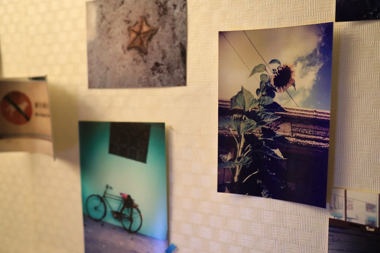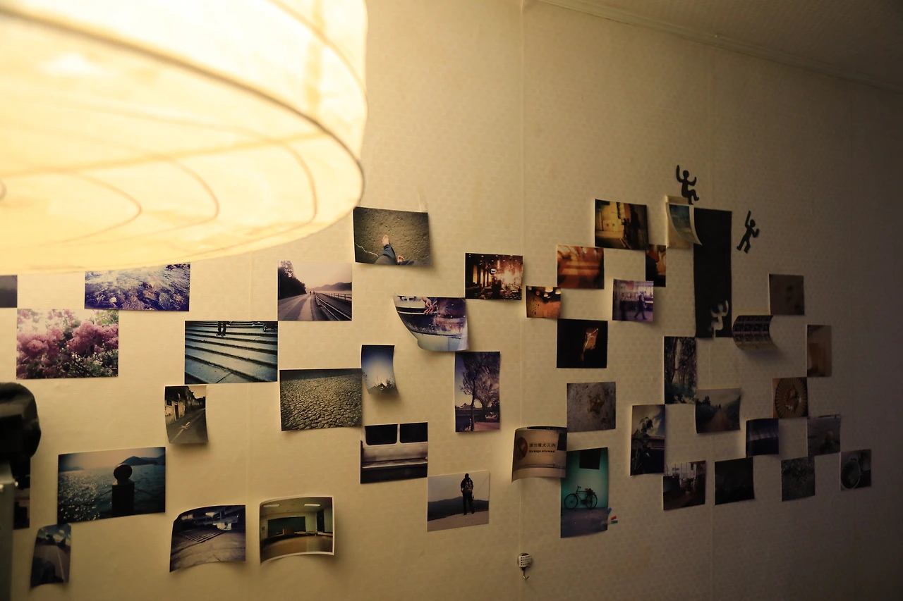 책상의 오른쪽 벽에 아무렇게나 붙여 둔 사진들이, 여전히 아무렇게나 붙어 있다.