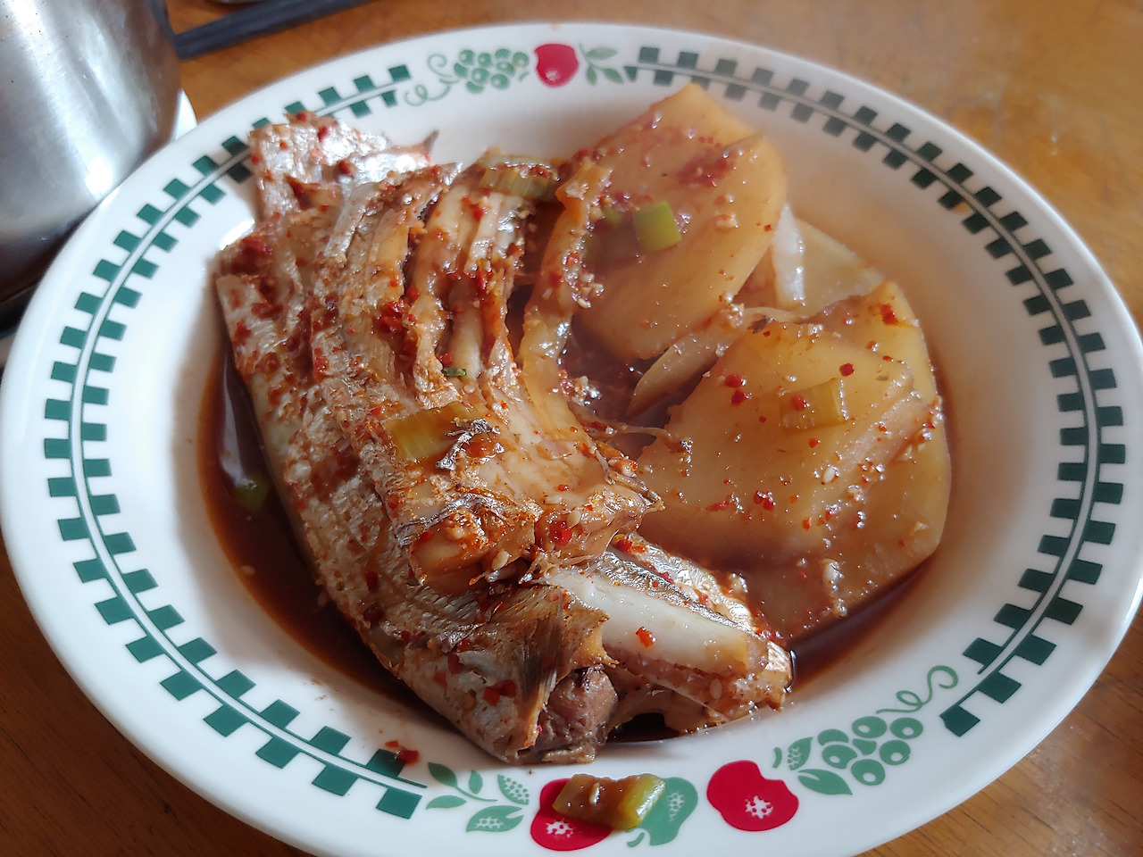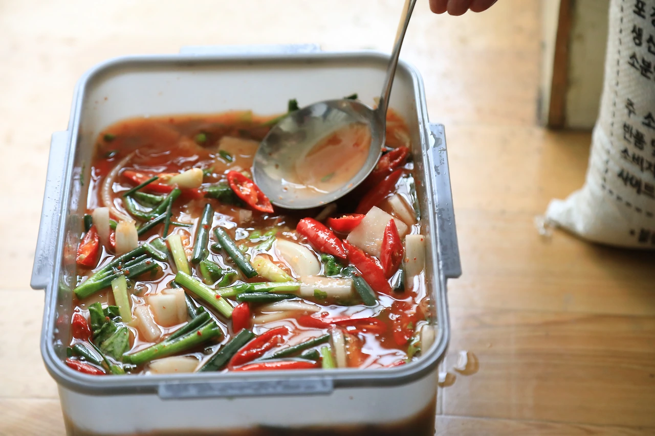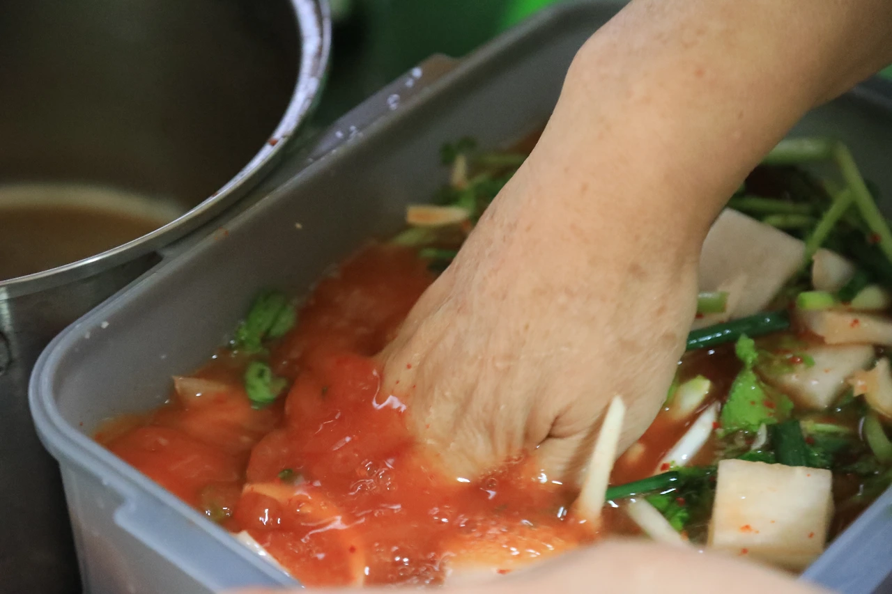 밀가루 끓인 물에 고춧가루를 체에 걸러 풀었다. 다진 생강과 마늘도 같이 풀었다. 엄마는, 곱게 풀지 말고 양념 씹히게 먹을까,라고 말하고 체에 거르는 걸 멈췄다. 무를 썰고, 양파, 골파, 파를 길게 썰어 넣었다. 다 넣으니 냄비가 가득이었다.