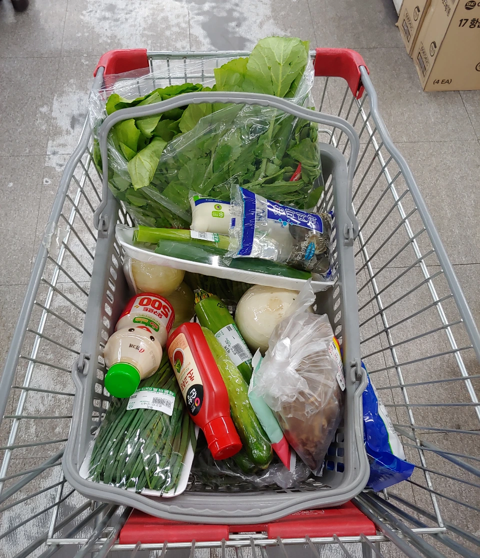 이 마트에서 카트를 처음 끌어봤다. (십수년 동안 바구니면 충분했다). 금세, 카트에 녹색이 가득했다. 갈치와 바지락까지 담겼다. 계란과 두부는 마지막에 추가됐다. 배달할 거냐, 는 직원의 질문에, 네,라고 쉽게 대답했다. 십수 년 동안 여기서 배달 서비스를 이용한 것도 처음이다.