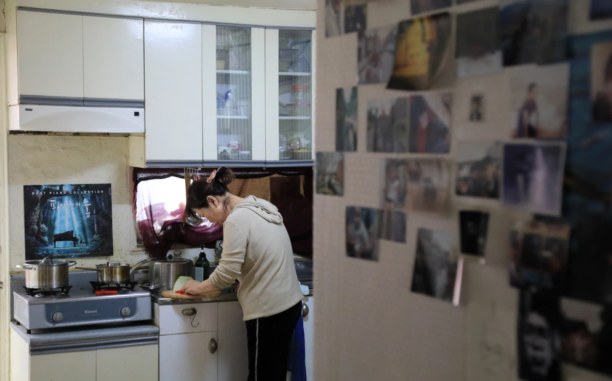 혼자 사는 아들의 작은 주방에서.