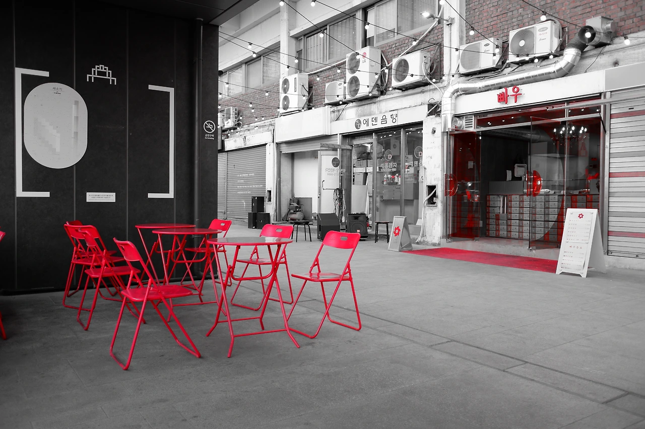 가게마다 애써 맞춰놓은 색을 즐긴다.