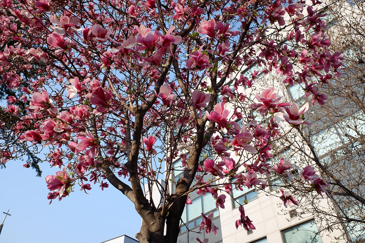 라일락은 아직 숨을 고르고 있지만, 목련과 벚꽃은 활짝이다.