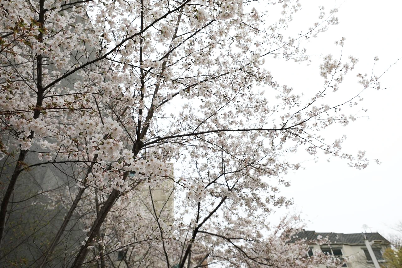 하지만 담이 낮진 않아서, 벚꽃을 눈 앞으로 당길 수는 없다.