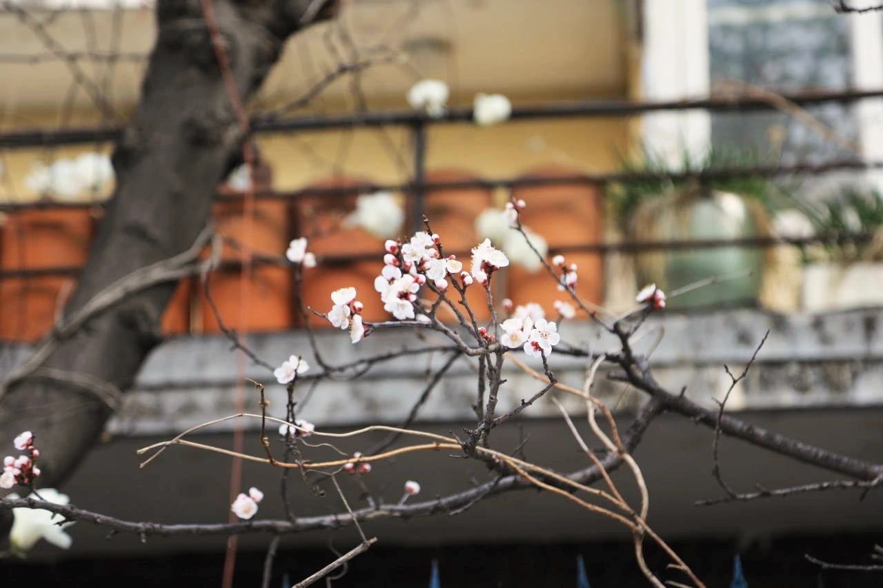 사람들이 부지런히 걷는 사이, 봄은 인도를 침범하고 있다.