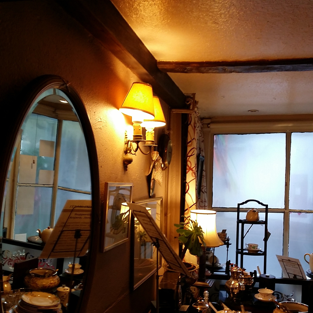 중심가. 내리는 비. 아담한 영국 전통 찻집 greys dining room에서 다 같이 홍차.